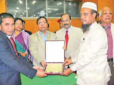 Muhammad Golam Rabbani and Md. Shahidul Haq Akand, Vice Presidents of the bank received the crest from Dr. Zafar Ahmed Khan, Secretary, Ministry of Expatiates’ Welfare and Overseas Employment on Wednesday at Bangabandu International Conference Centre in Dhaka.