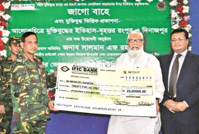 IFIC Bank contributed Tk 2.5 million to Rangpur Cantonment authorities for making a docu-fiction titled “Jago Baahe” and a publication on the role of grater Rangpur and Dinajpur in Liberation War in 1971.