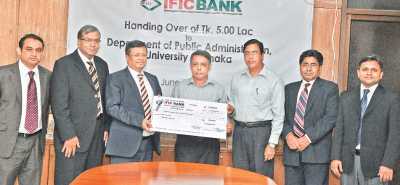 IFIC Bank gives Tk 5 lakh to DU Public Admin Dept