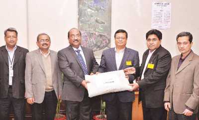 Shah A Sarwar, Managing Director and Chief Executive Officer (CEO) of IFIC Bank, hands over blankets to Deputy Governor of Bangladesh Bank SK Sur Chowdhury at BB head office in Dhaka on Monday.