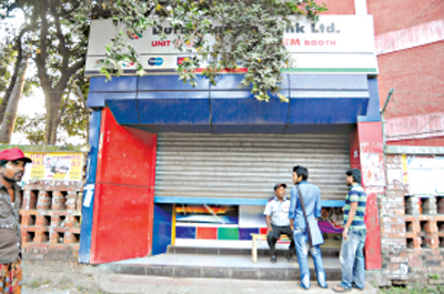 A file photo shows an automated teller machine booth in the capital. Bangladesh Bank has recently asked eight scheduled banks, attached to the National Payment Switch Bangladesh, not to charge clients more than the stipulated Tk 10 for each inter-bank transaction through ATMs.