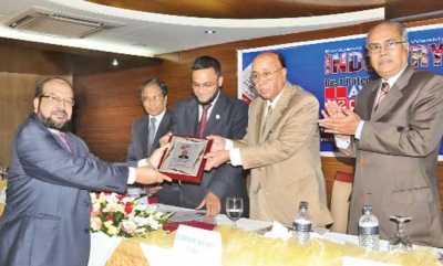 Dr. AB Mirza Azizul Islam, former adviser of the caretaker government handed over the ‘Remittance Ambassador Award’ to Mohammad Abdul Mannan at a hotel in Dhaka Saturday.