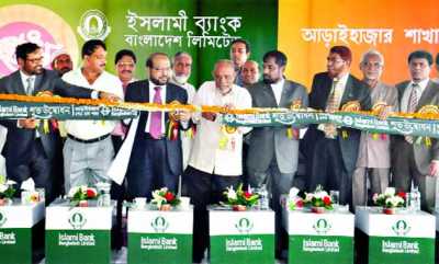 Commodore (retd) Mohammad Ataur Rahman, former chairman of Islami Bank Bangladesh Limited, inaugurates a branch at Araihazar in Narayangonj Monday