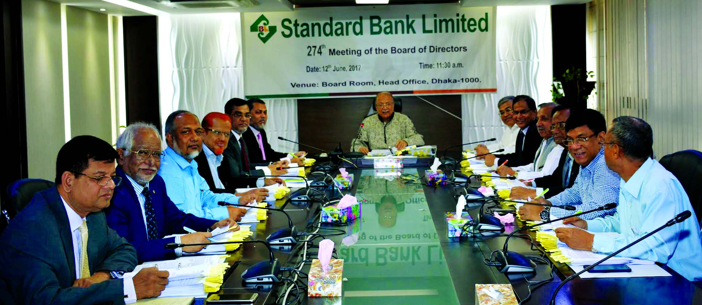 Kazi Akram Uddin Ahmed, Chairman, Board of Directors of Standard Bank Ltd. presiding over the 274th meeting at the bank head office in the city on Monday. Mamun-Ur-Rashid, Managing Director, SAM Hossain, Vice-Chairman, Kamal Mostafa Chowdhury, Ferozur Rah
