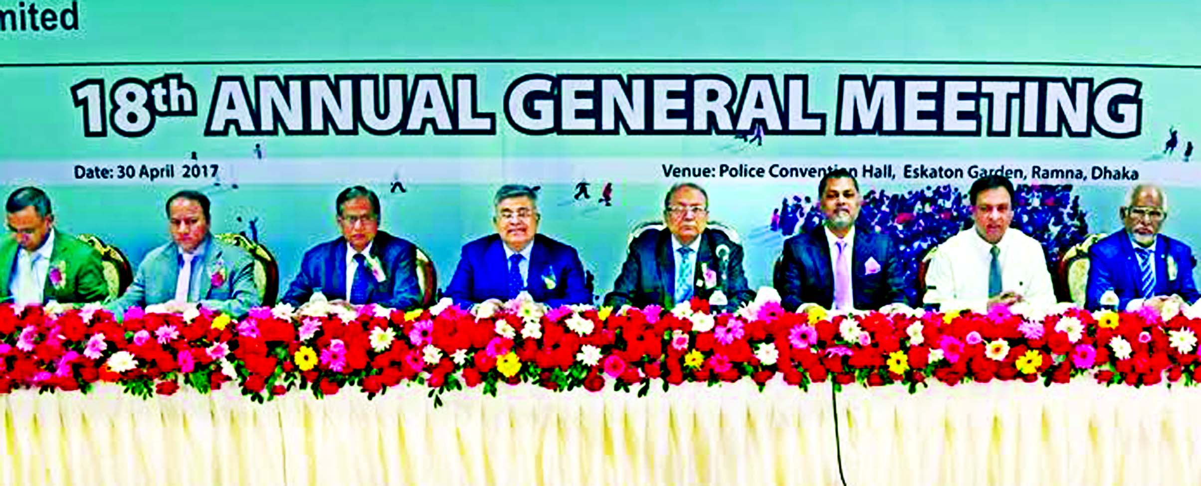 Kazi Akram Uddin Ahmed, Chairman of the Board of Directors of Standard Bank Ltd. presiding over its 18th AGM at a city convention center on Sunday. The AGM approved 5pc cash & 5pc stock dividend for the shareholders for the year 2016. SAM Hossain, Vice-Ch