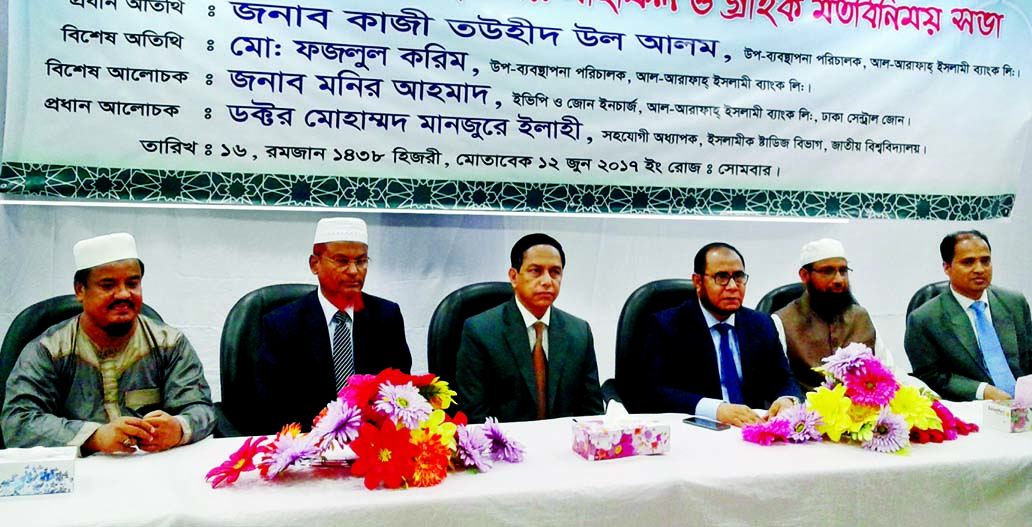 Kazi Towhidul Alam, DMD of Al-Arafah Islami Bank Limited, addressing the clients\' views exchange programme at its Mohakhali Branch on Monday. Mohammad Salahuddin Mamun, AVP of the bank presiding over the programme.