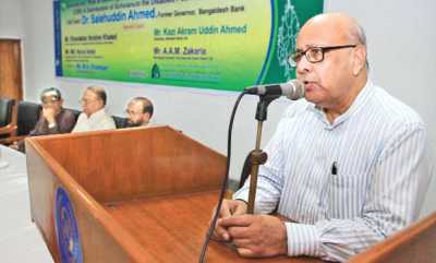 Khandker Ibrahim Khaled, Chairman of Bangladesh Krishi Bank, speaks at a workshop