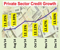 The central bank earlier set the ceiling for private sector credit growth at 16.5 per cent including foreign borrowing while 14 per cent from local sources for the July-December period of the current fiscal year (FY) 2014-15.
