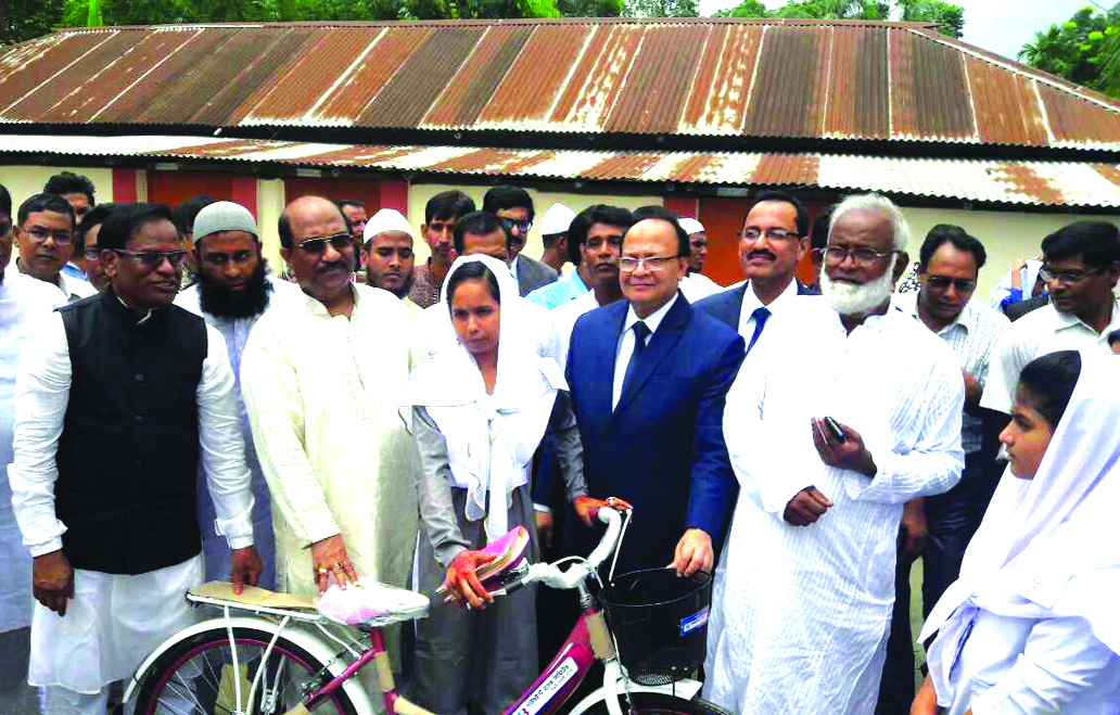 M Kamal Hossain, Managing Director of Southeast Bank Limited, handing over 100 ladies bicycle among underprivileged school and college girls of Lalpur-Bagatipara Upazila, Natore on Saturday. Shitangshu Kumar Sur Chowdhury, Deputy Governor, Bangladesh Bank