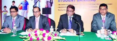 Ali Reza Iftekhar, Managing Director & CEO, Eastern Bank Limited launching the "Student Banking" Tuesday at a press conference. M Muklesur Rahman, Deputy Managing Director, Towfiqul Alam Chowdhury, Head of NRB and Student Banking, Ziaul Karim, Head of Brand and Marketing, EBL were also present. (Story on page 24)