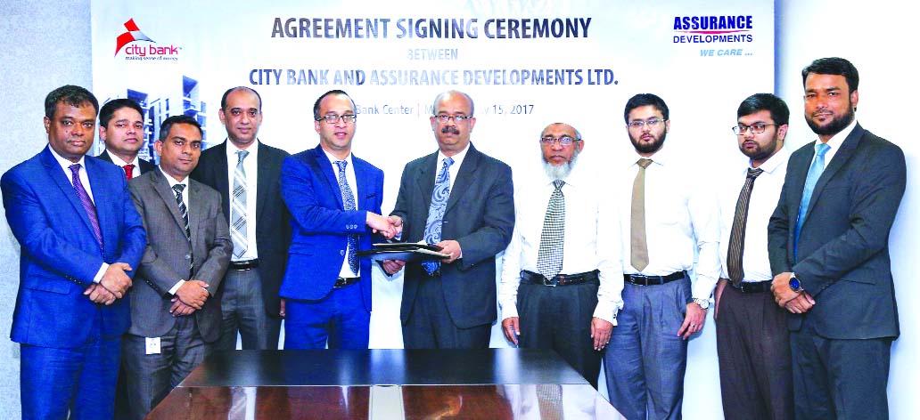 Mashrur Arefin, Additional MD of City Bank and Engr. Md. Arifur Rahman, Chief Executive Officer of Assurance Developments Ltd, signed an agreement at the bank's head office recently. Under the deal the customers of the company will get attractive benefits