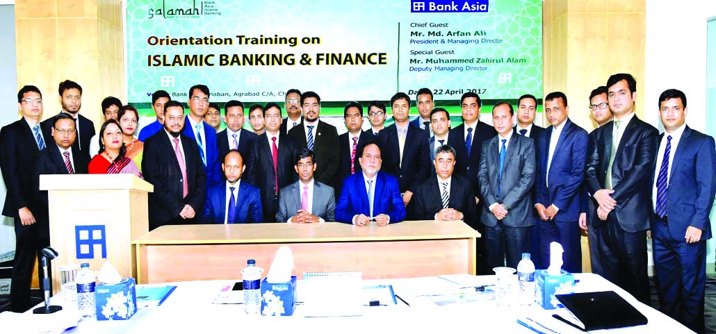 Md Arfan Ali, Managing Director of Bank Asia Ltd, poses with the participants of a training program on 'Islamic Banking and Finance' at Bank Asia Bhaban at Chittagong city recently. Muhammed Zahirul Alam, DMD, AKM Shaiful Islam Chowdhury, SVP and AKM Miza