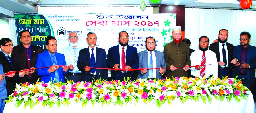 Md Habibur Rahman, Managing Director of Al-Arafah Islami Bank Limited, inaugurating the 'Service Month 2017' programme at the banks Motijheel Branch in the city on Tuesday. Md Abdul Jalil, Md Fazlul Karim, Muhammad Mahmudul Hoque, DMDs and senior executiv