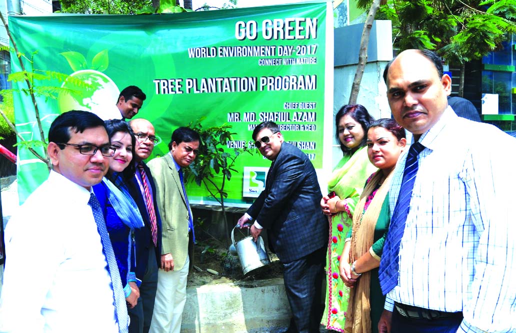 Md. Shafiul Azam, Managing Director of Modhumoti Bank Limited, inaugurating a \"Tree Plantation Programme\" on the occasion of World Environment Day-2017 at Modhumoti Gulshan Branch premises on Tuesday. SK Talibur Rahman, SEVP & Chief Risk Officer, Naim