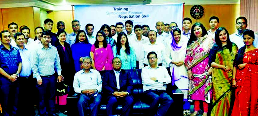 Md Tabarak Hossain Bhuiyan, Managing Director of Prime Bank Investment Limited, poses with the participants of a daylong training session on "Syndication Finance and Negotiation Skill" at the bank's head office in the city recently. Md. Golam Rabbani, Tou