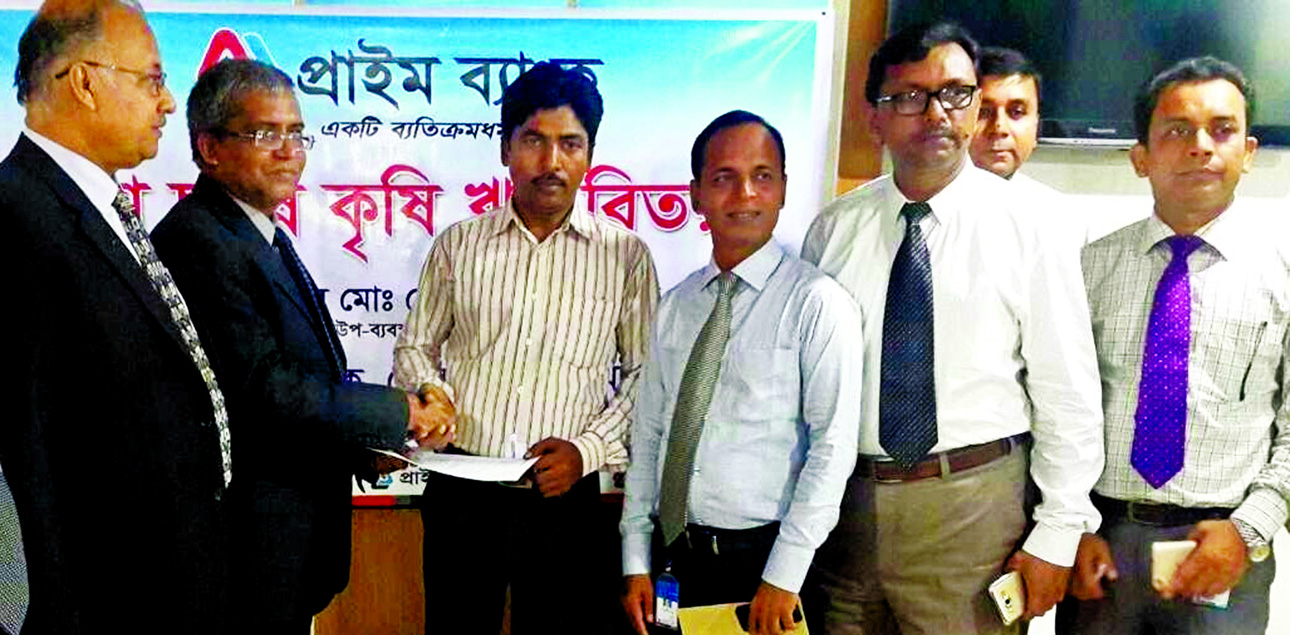 Md Touhidul Alam Khan, Deputy Managing Director of Prime Bank disbursing agriculture loan for cultivation of Banana in Kushtia through Poradah SME/ branch recently. Imtiaz Ahamed Bhuiyan, EVP, AKM Enamul Haque, VP and regional head of Rajshahi, Khan Md A