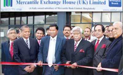 Md Abdul Jalil, MP, founder chairman of Mercantile Bank Limited, is seen inaugurating an exchange house in the UK recently.