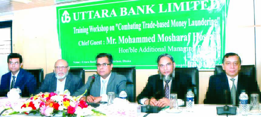 Mohammed Mosharaf Hossain, Additonal Managing Director of Uttara Bank Limited, presiding over a daylong workshop on "Combating Trade-based Money Laundering" at the bank head office in the city recently. Syed Shaikhul Imam, GM, Sultan Ahmed and Md Abdul Qu