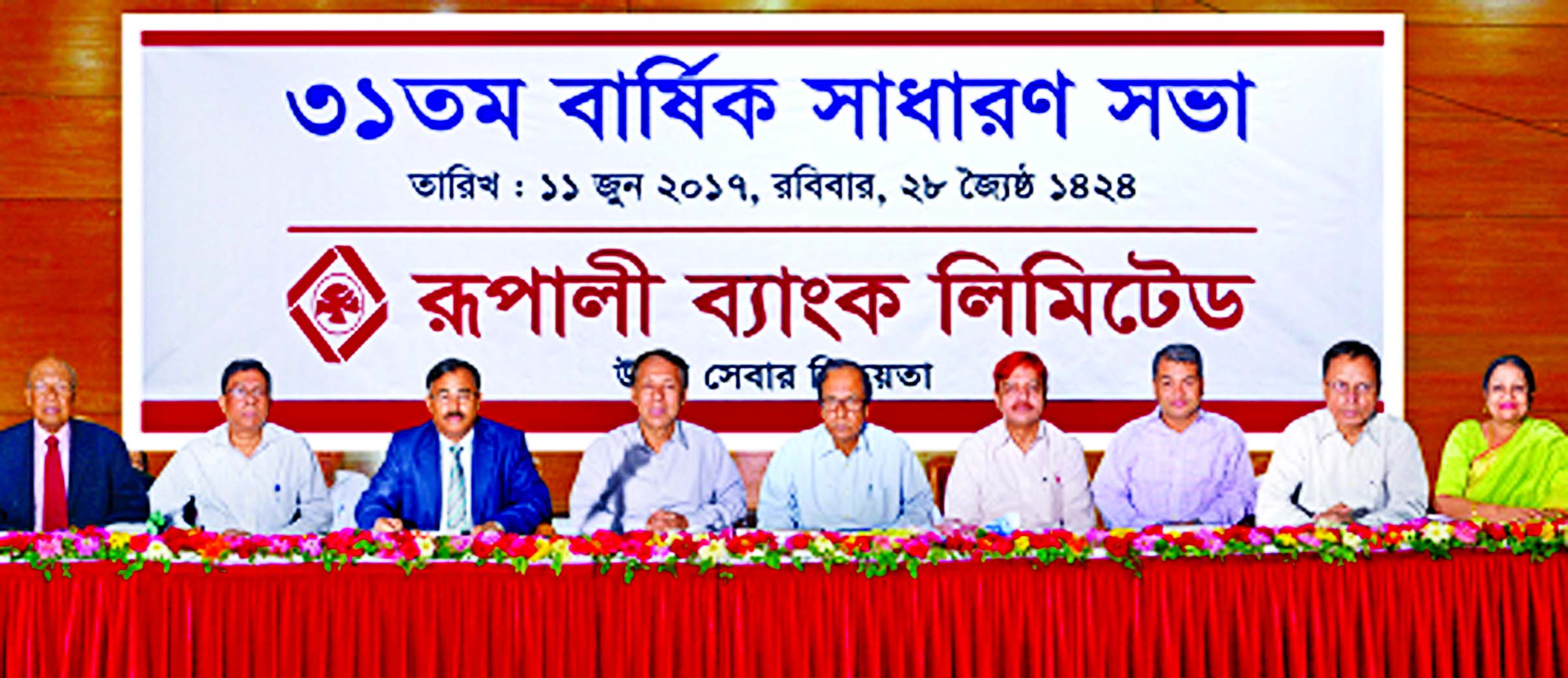 Monzur Hossain, Chairman, Board of Directors of Rupali Bank Limited, presiding over the 31st AGM at the bank head office in the city on Sunday. Ataur Rahman Prodhan, Managing Director, Professor Dr. Md Hasibur Rashid, Dina Ahsan and Professor Dr. Mohamma