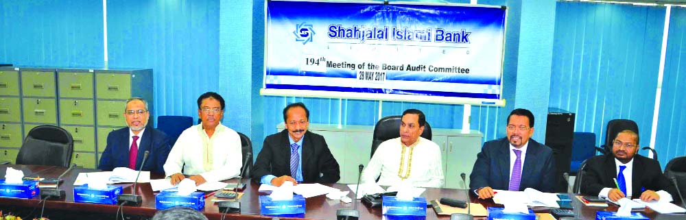 Mosharraf Hossain Chowdhury, Chairman, Board of Audit Committee of Shahjalal Islami Bank Limited, presiding over the 194th meeting at the bank's head office in the city on Monday. Farman R Chowdhury, Managing Director, Abdul Halim, Mohammed Golam Quddus,