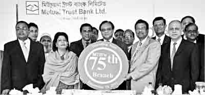 Yasmeen Haque, director of Mutual Trust Bank, inaugurates the 75th branch of the Bank on Shah Mokdum Avenue in Dhaka recently. Anis A Khan, managing director, was also present.