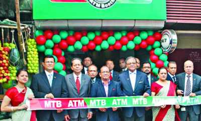 Md. Jahangir Alam, Managing Director, MI Cement Limited, inaugurates an ATM booth of MTB at KFC Building, Lalkhan Bazar, Chittagong recently. Anis A. Khan, MTB Managing Director and CEO, Md. Ahsan-uz Zaman, Additional Managing Director, Mohammad Ali Chowdhury, Head of MTB Chittagong Division Branches, local elite and senior officials of MTB are seen.