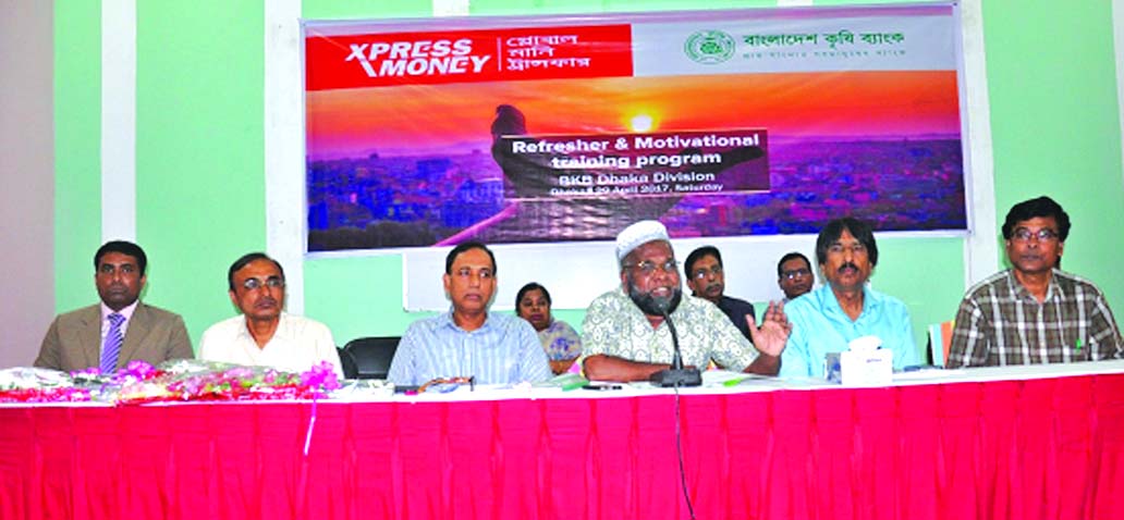 Muhammad Awal Khan, Managing Director of Bangladesh Krishi Bank, addressing a training program on \'Refreshers & Motivational Training Program\' at the bank\'s Staff College auditorium in the city recently. Md Abul Hossain, DMD was also present.