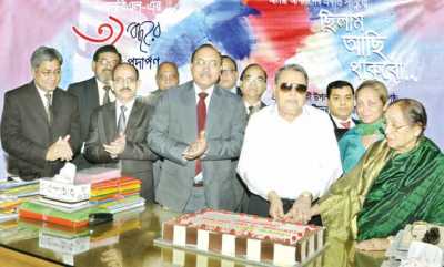 Zainul Haque Sikder, Chairman of National Bank Limited, inaugurates the 31st anniversary of the bank by cutting a cake at a function in Dhaka on Sunday. National Bank Limited celebrated its 31st anniversary in Dhaka on Sunday.