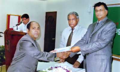 Neaz Ahmed, managing director and CEO of National Bank Limited is seen distributing certificates among the participants of a training course recently.