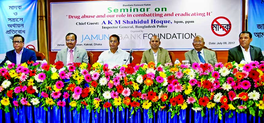 Nur Mohammed, Chairman, Jamuna Bank Foundation, presiding over a seminar on \"Drug abuse and our role in combating and eradicating it\" at IDEB in Dhaka recently. Inspector General, Bangladesh Police AKM Shahidul Hoque was present as chief guest. Shafiqu