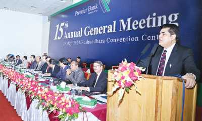 Dr. HBM Iqbal, Chairman of the Board of Directors of Premier Bank Limited, presides over the 15th AGM of the bank at Bashundhara Convention Center-2 at Bashundhara Residential Area in Dhaka on Wednesday.