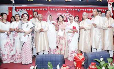 Md. Nader Khan, Chairman of Prime Bank Limited, along with other high officials of the bank, is seen at a day-long cultural programme to welcome the Bengali New Year-1421 at the Amazon Club of Gulshan on Monday.