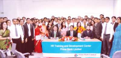 M Reazul Karim, Additional Managing Director and Md. Iftekhar Hossain, Head of HR of Prime Bank, are seen with the participants of a training course in Dhaka.