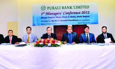 Helal Ahmed Chowdhury, managing director of Pubali Bank Limited, presides over the Managers' Conference-2012 of the bank at its head office in the city recently.