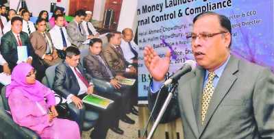 Helal Ahmed Chowdhury, Managing Director of Pubali Bank Limited, speaks at a workshop on "Money Laundering Prevention & Internal Control & Compliance" organised by the bank in Dhaka recently.
