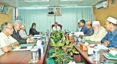 Professor Dr. M Shah Nowaz Ali, Chairman of RAKUB, presides over a meeting at the board room of the bank’s head office in Rajshahi on Tuesday.