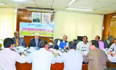Md Moffazzal Husain, Managing Director of RAKUB, presides over a meeting at the bank's GM office in Rajshahi Wednesday.