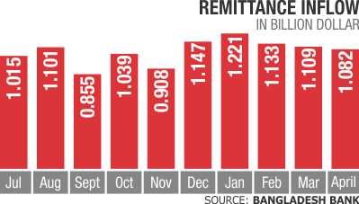 During the period, more than $1 billion was remitted from abroad by Bangladeshi migrant workers every month, except September and November, according to data from the central bank.