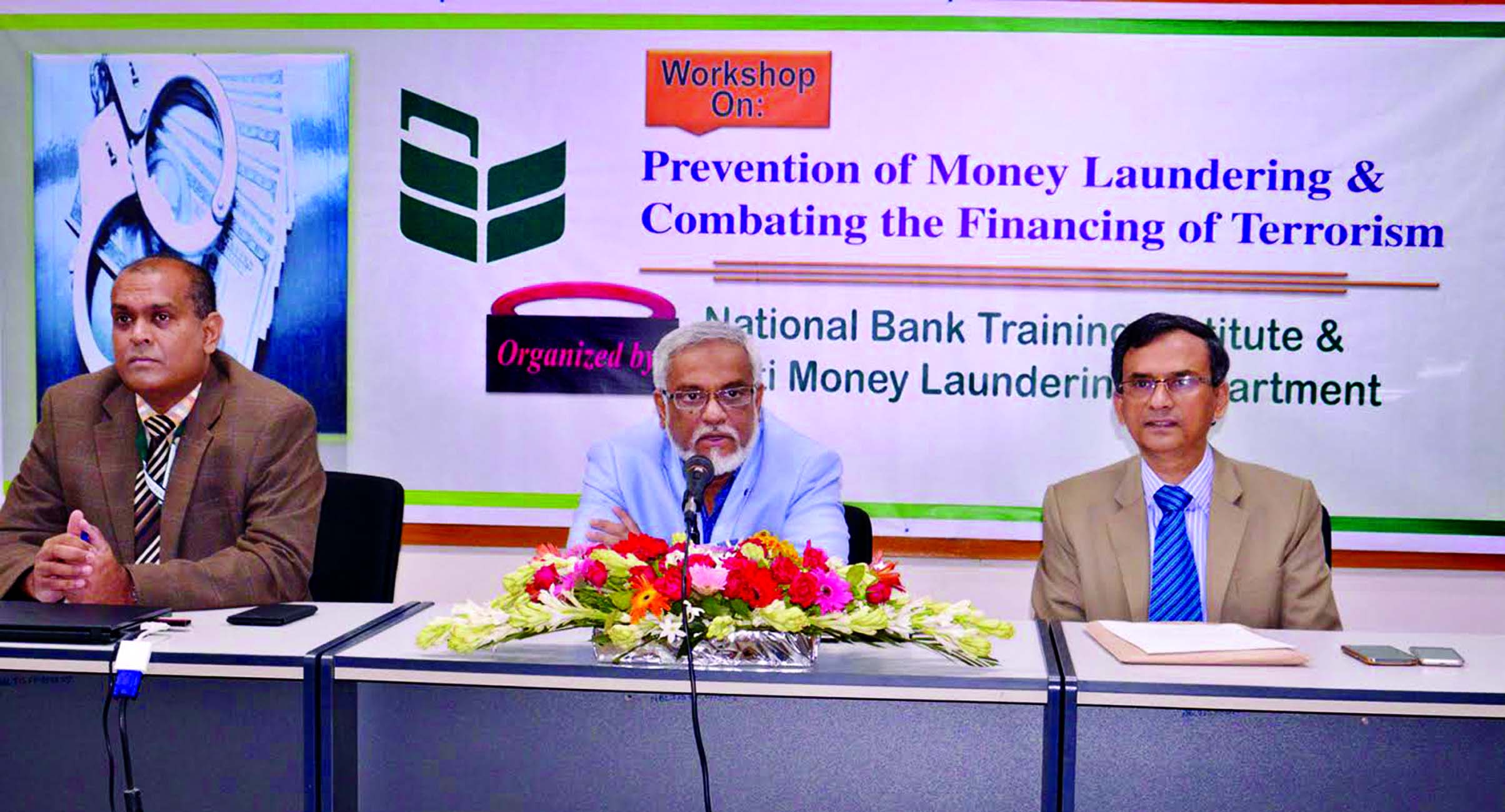 Shah Syed Abdul Bari, DMD, Head of HRD of National Bank Limited, presiding over a workshop on \"Prevention of Money Laundering and Combating the Financing of Terrorism\" at the bank training institute in the city recently. A total number of 60 officers of