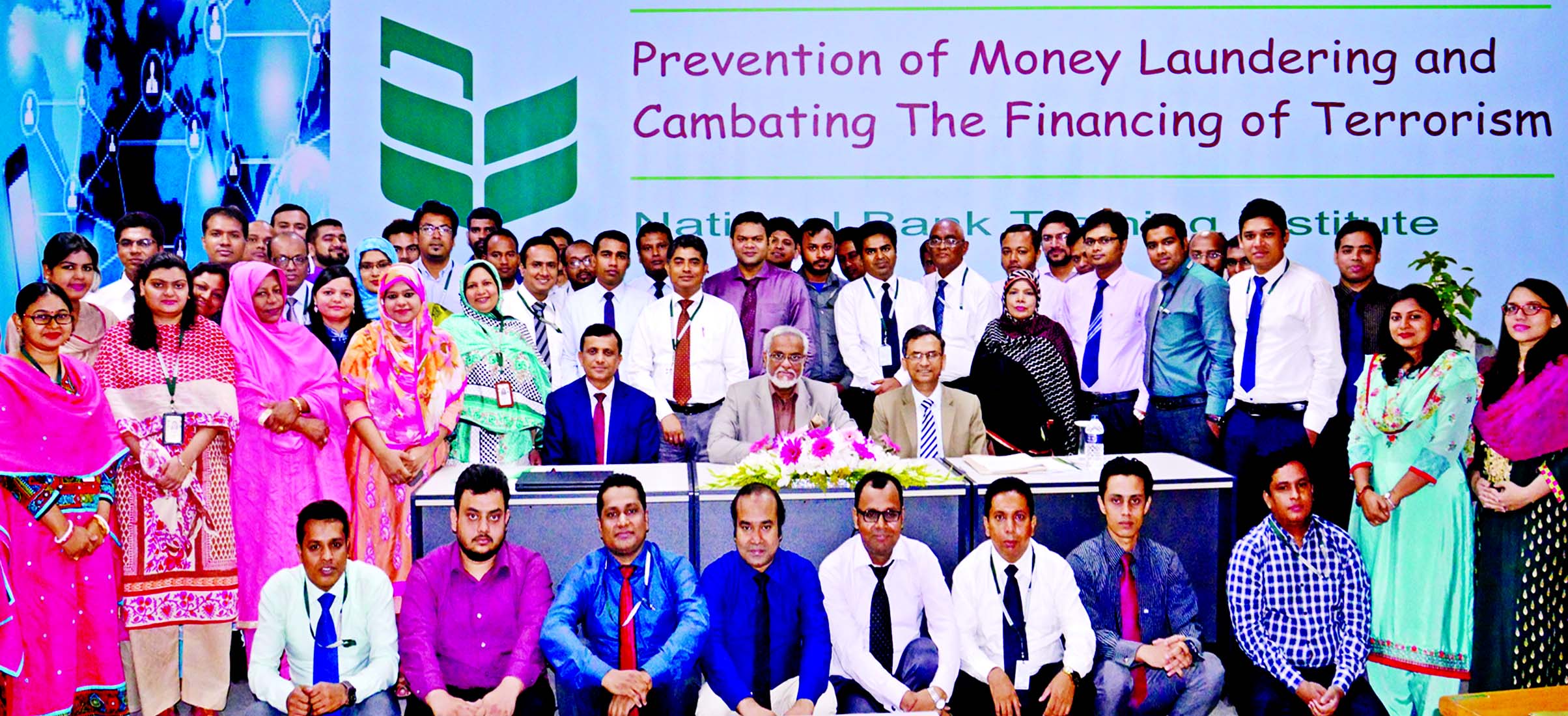 Shah Syed Abdul Bari, DMD of National Bank Limited, poses with the participants of workshop on \"Prevention of Money Laundering and Combating the Financing of Terrorism\" at its training institute in the city recently. Abdul Wahab, SVP and officers of For