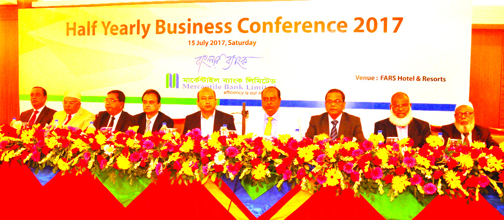 Shahidul Ahsan, Chairman of Mercantile Bank Limited, presiding over the "Half-Yearly Business Conference-2017" at a city hotel on Saturday. Kazi Masihur Rahman, Managing Director, AKM Shaheed Reza, Vice-Chairman, Mohd. Selim, EC Chairman, Akram Hossain (H