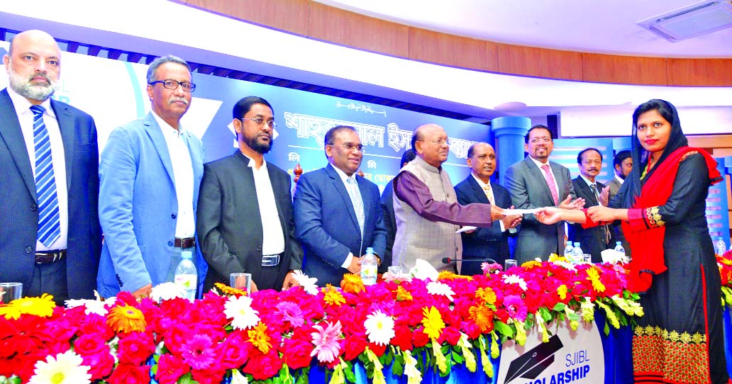 Shahjalal Islami Bank Limited awarded scholarship among the brilliant and poor students of the country. Commerce Minister Tofail Ahmed, MP, handing over a scholarship Cheque among the students at Officers Club in the city on Saturday. Engr. Md Towhidur Ra