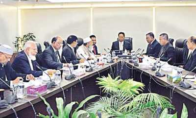 Major (Retd) Dr. Md Rezaul Haque, Chairman of the board of directors of SIBL, presides over a meeting at the bank’s corporate office in Dhaka recently.
