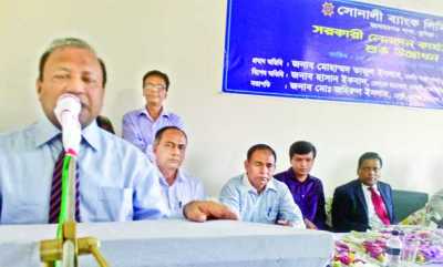 Md Tajul Islam, MP, speaks at the inauguration of Sonali Bank's treasury activity at Manohorganj, Comilla on Monday.