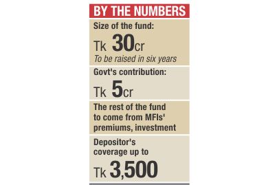 The Tk 30 crore fund, known as the Depositors Safety Fund, will be raised in six years. The government will provide Tk 5 crore to the fund and the rest will come from premiums paid by licensed MFIs.