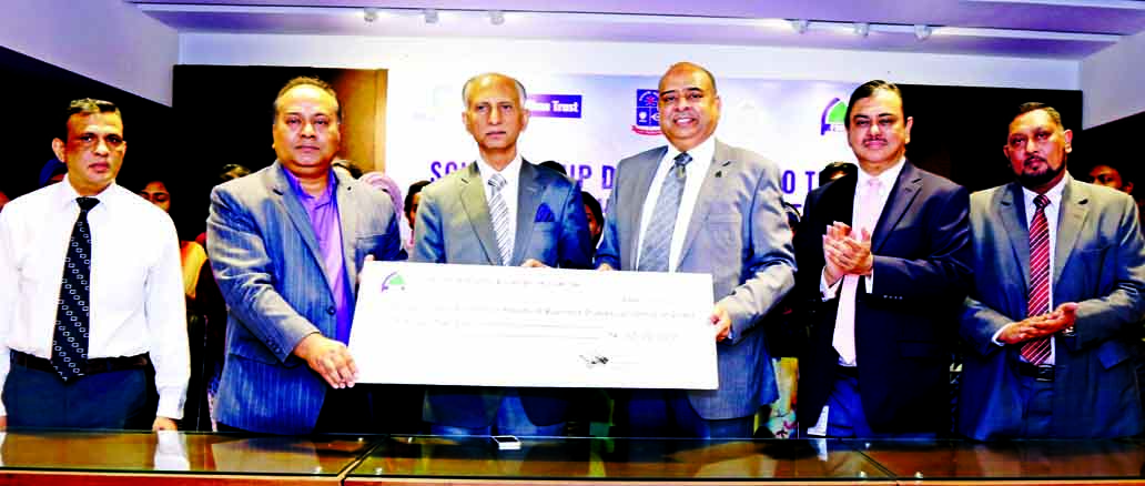 Syed Waseque Md Ali, Managing Director of First Security Islami Bank Limited, handing over a donation cheque to Prof. AAMS Arefin Siddique, VC of Dhaka University on Sunday for scholarship to meritorious and financial challenged students of Business Studi