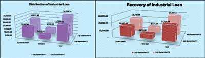 In case of outstanding term-loan, the recovery moved higher by 20.26 percent to Tk. 81.91 billion in FY13 compared to Tk 68.10 billion in the same period of FY12. Total recovery of industrial credit in July-September FY12 was Tk. 217.04 billion.
