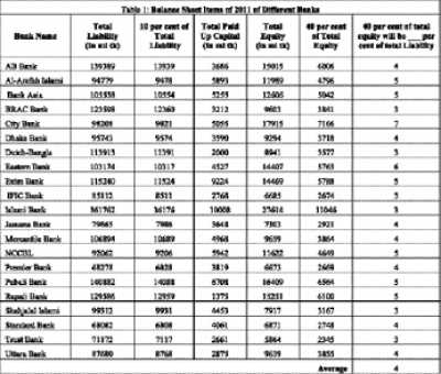 This article is based on my study of balance sheets of 21 listed Bangladeshi banks in 2011. (See the Table). For nine out of 21 banks, 21, 10 per cent of the total liability is even greater than total equity. For all the sample banks, 10 per cent of total liability is more than double when compared with 40 per cent of the total equity. On Average, 40 per cent of total equity looks like 4 per cent of total liability. Thus, in the proposed amendment, the ability of banks to invest in the stock market is actually reduced, on average, by more than 60 per cent when compared with existing exposure limit, i.e., 10 per cent of the total liabilities. So, if proposed amendment comes into effect, it will actually demand banks to reduce their investment in the stock market substantially.