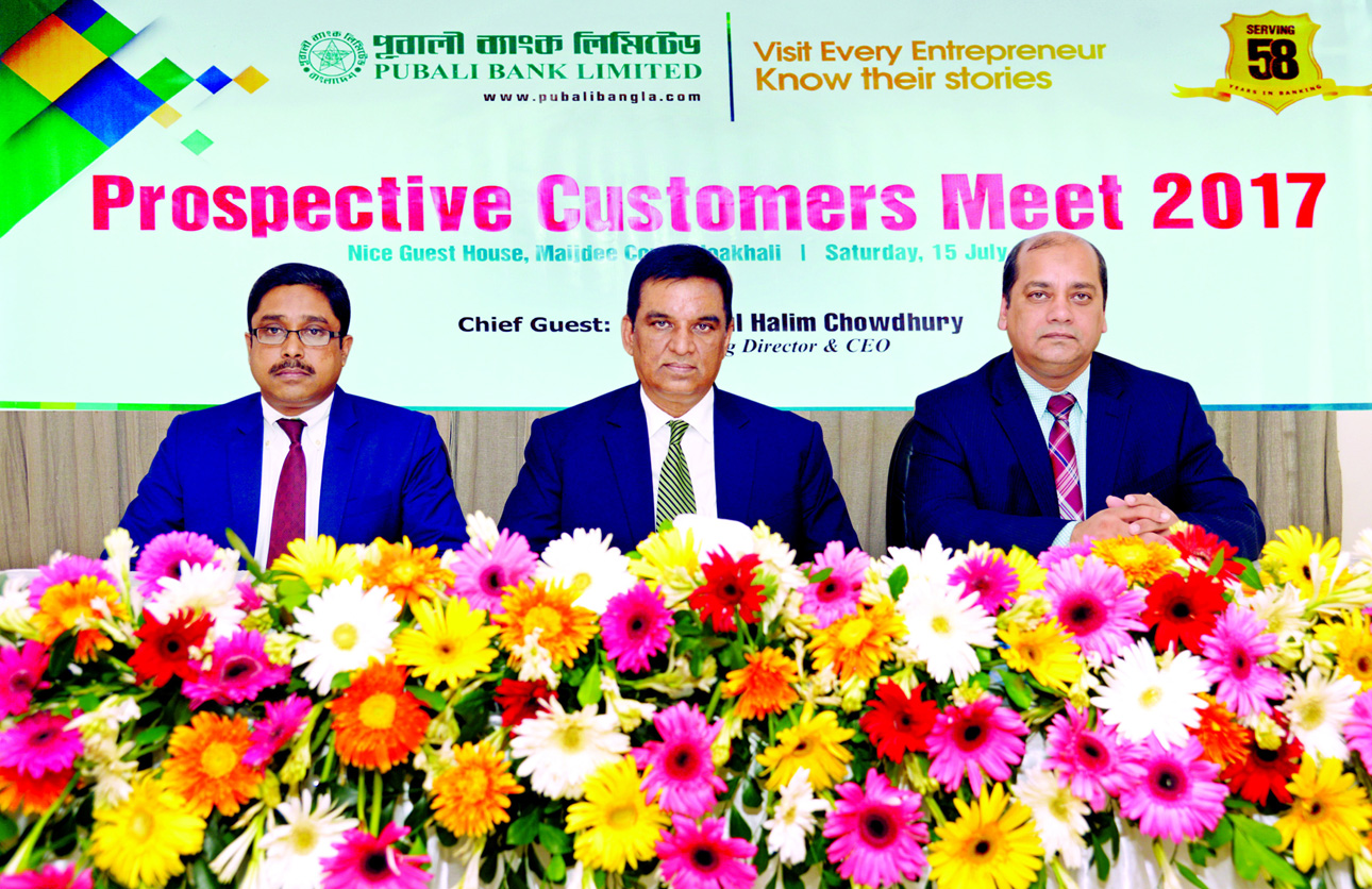 Md. Abdul Halim Chowdhury, Managing Director of Pubali Bank Limited, presiding over its 'Prospective Customers Meet -2017' to exchange views with Customers of Noakhali Region recently. Mohammad Ali, DMD of the bank was present.