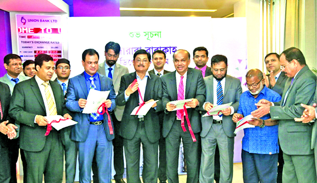 Omar Farooque, Managing Director of Union Bank Limited, unveiling a new product named \'Mudaraba Barakah Deposit Scheme\' at a function in the capital on Sunday. Additional Managing Directors of the bank Syed Abdullah Mohammed Saleh and ABM Mokammel Hoque